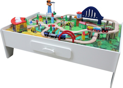 Kids toys play 75 pc train set wooden table 32 x 23 x 15 roads scene toddlers. 4.0 out of 5 stars. Sold and shipped by spreetail. Sold & shipped by ryan s home goods llc. Sold by ami ventures inc. Is the perfect way to spark your child's imagination and creativity. Wooden train set table for kids, deluxe had painted wooden set with tracks, trains, cars, boats, and accessories for boys and girls by hey! A wide variety of wooden train sets and tables options are available to you, such as style, gender, and certification. Train table sets our train table sets are designed to clear messes off the floor and give little engineers a dedicated spot to survey their villages of trains wherever their travels may take them. 5 out of 5 stars Kidkraft metropolis playing table set #1. It comes with three strong red plastic cartons that can slide under the table for effortless storage. Tuck this train table away in the corner of the room and use shallow bins to store extra toys underneath.